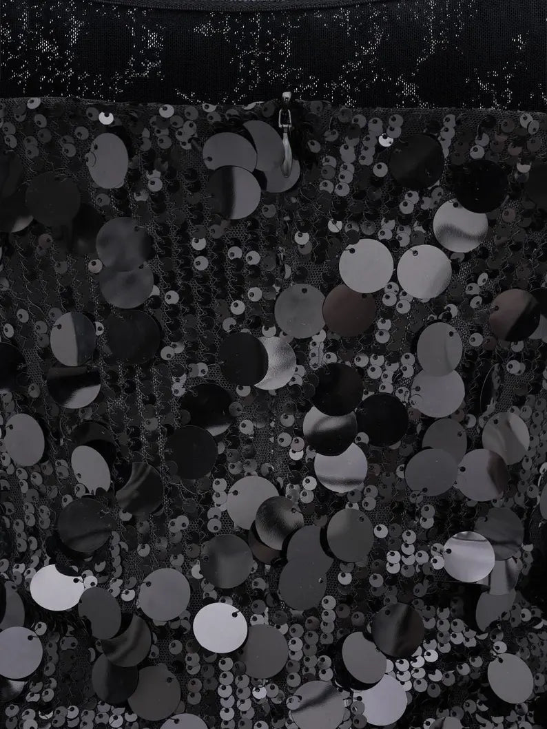 This timeless black sparkly dress can be styled with heels, statement earrings, or a sleek clutch for a complete evening look. If you’d like adjustments in length or fit, feel free to message us—we’re happy to customize.