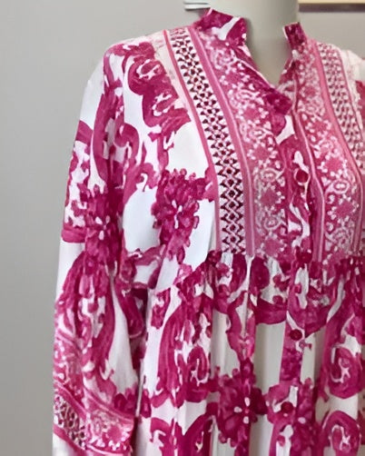Maggy London Consuela in Pinecone Scroll Tiered Ruffle Midi Dress