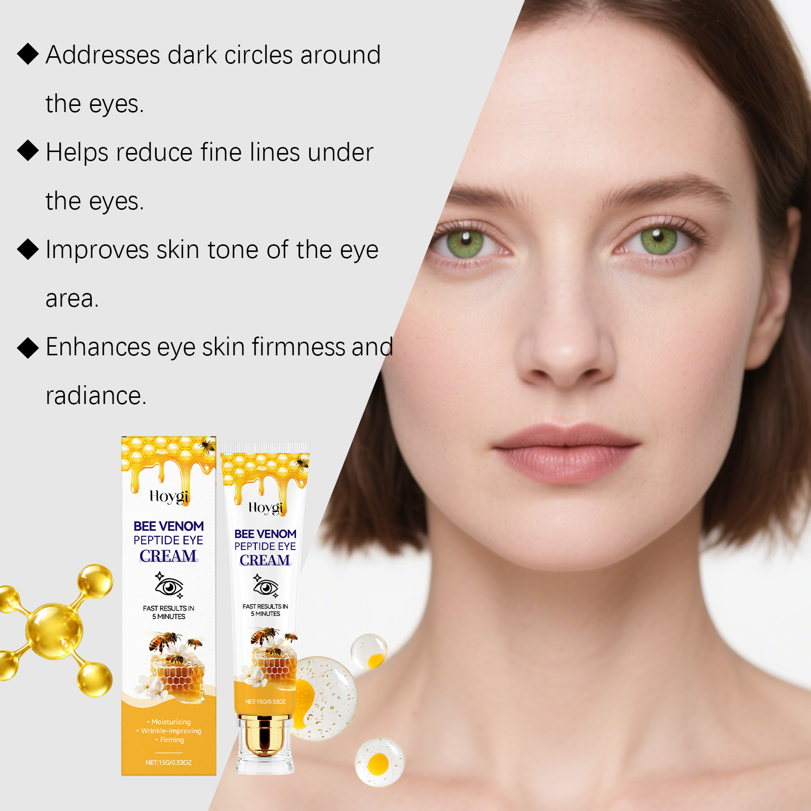 Ingredients: water, mineral oil, glycerin, glycerol stearate, 1,2- hexanediol, carbomer, arginine, bee venom.